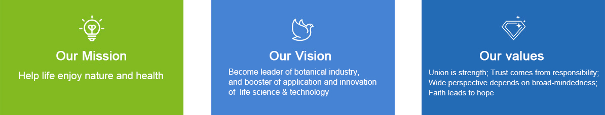 In the field of botanical ingredients, we are focused on continuously promoting our capability in raw materials ensuring, quality management and R&D. Our extracts, herbal essence and formula are widely used in the field of pharmaceuticals, personal care, food, health products and feed.